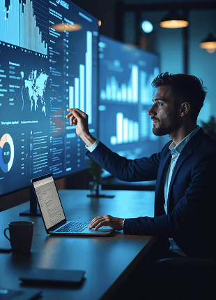 We craft AI-powered real estate platforms that forecast market shifts, refine property valuations, and automate leasing processes. Our intelligent systems integrate geospatial analytics, predictive insights, and workflow automation to elevate portfolio performance with unmatched precision.