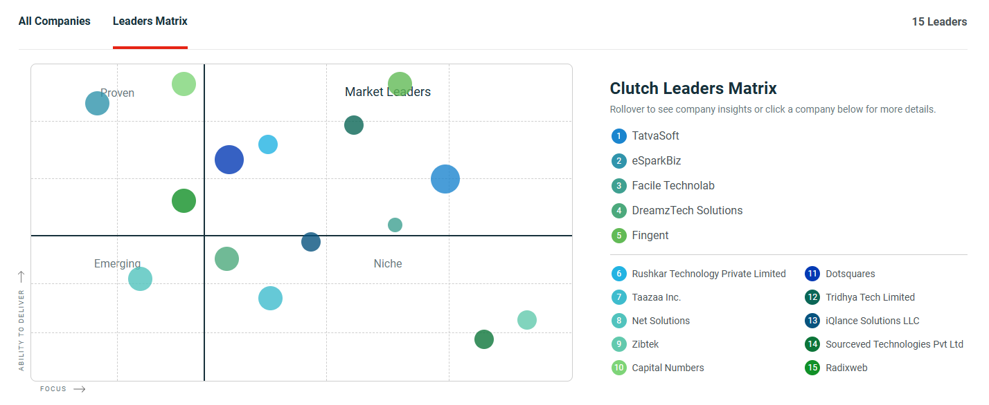 - Listed by Clutch Leader Matrix as a reputable software development provider in India.